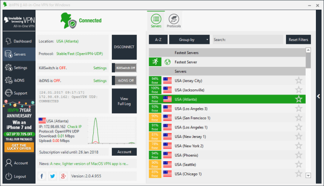 从 Windows 或 Mac 系统连接。服务器位于美国和韩国。加速器 服务支持 Open加速器、PPTP 和 L2TP 连接。